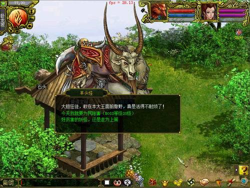 羊头怪,刷新地点卧龙坡;牛头怪,刷新地点官道南。玩家发现boss后,点击 boss 即可进入战斗。进入战斗后, 怪物身边会出现九只小怪。Boss未死,小怪每死一只,主怪都将召唤一只新的小怪来加入战斗,新召唤出来的小怪等级提高。玩家杀死所有怪物方能获得奖励。