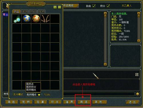5、玩家的积分可以在竞技申请人处(天墉城275,140)兑换自身数值奖励和道具奖励,并可以将积分回兑为竞技点。