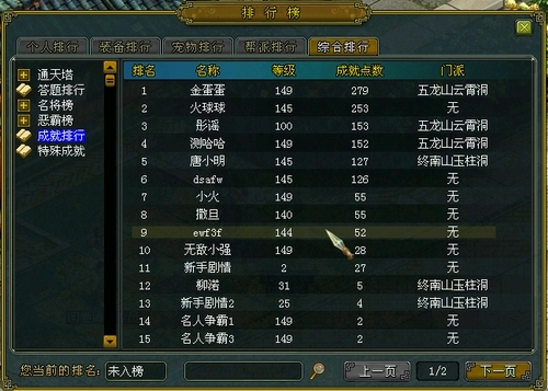 查看成就排行榜NPC:百晓通天墉城(202,161)