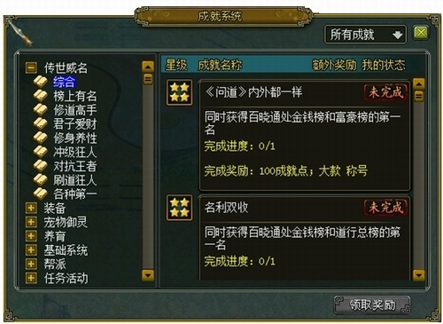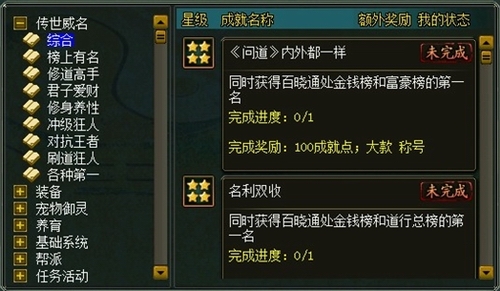 成就非凡当昭告天下,玩家完成成就获得成就进入全区前100时将进入成就排行榜,震古烁今,东成西就!