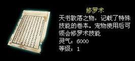 2、对宠物使用天书散卷,宠物获得相应的天书技能,天书技能均属于被动技能。