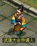 | 地图名称 | 天墉城 | NPC名称 | 车夫 | NPC坐标 | 371,152 | NPC功能 | 传送玩家 | | | | 地图名称 | 天墉城 | NPC名称 | 试道大会申请人 | NPC坐标 | 229,113 | NPC功能 | 比武申请人 | | |