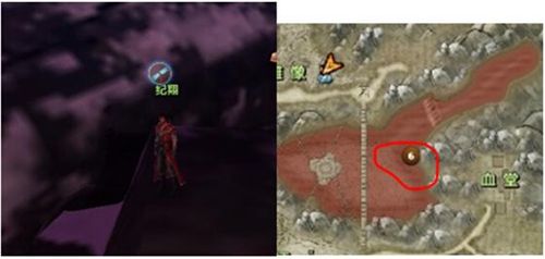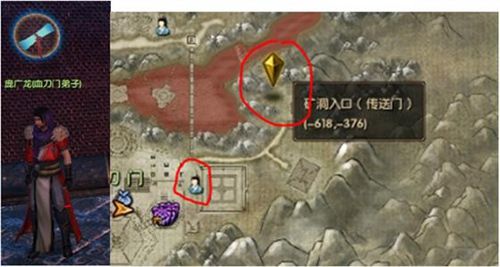 要求大家到红圈中的矿洞入口找血石,但为了效率,先到红圈中的NPC处接取下一个任务。