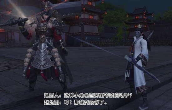 一个迅雷不及,赵允弼竟箭步冲上前来,我防御不及,受了他一掌。这一掌使我严重受创,口吐鲜血。赵允弼又举起他的大刀,向我砍来。。我听到了自己急促的呼吸声,看来。。我终究还是要死在这里。。我不甘心!我不但不能手刃仇人,如今更是要成为他的刀下亡魂。。。可就在此时,我听到了鬼面人的声音。