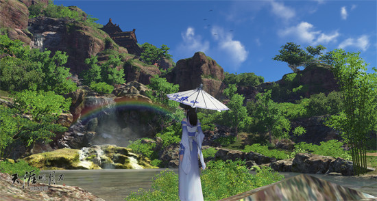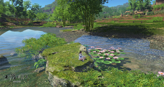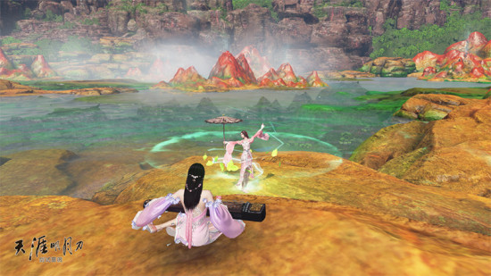 东越无疑是天刀最明媚的地图没有之一,明艳的色彩,轻快的溪流,给人一种明媚的气息。