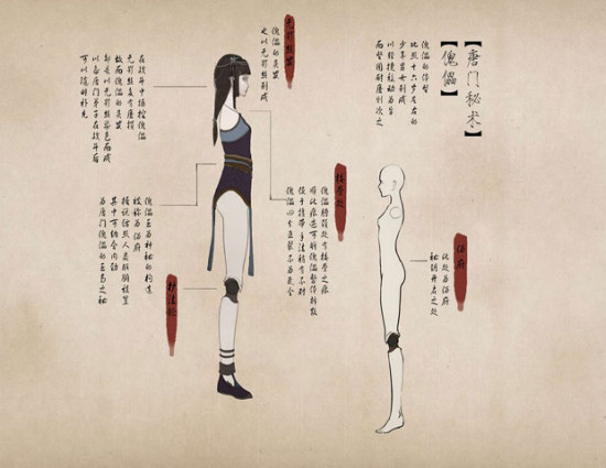 指关节:由于傀儡可以如人类一般操纵唐门机关暗器故而精巧如生的十指关节最为重要。