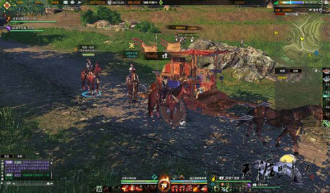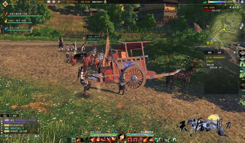 开始押镖时,由队长与发镖人对话,并确认队友、路线、奖励等,队长拥有镖车控制权,可自由选择镖车的前进与停止。