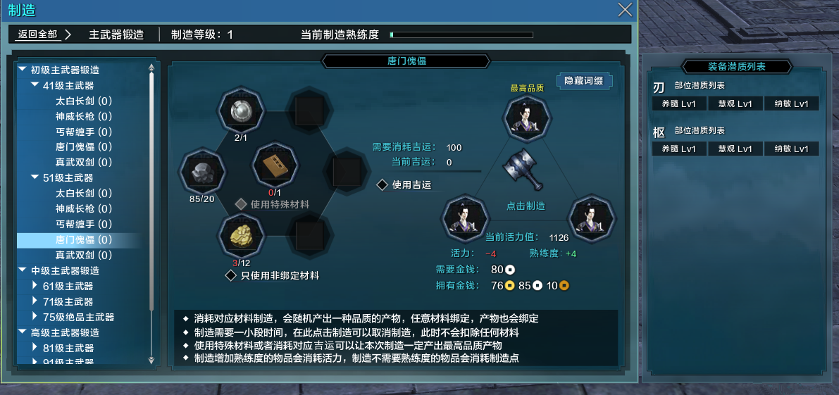 1天涯明月刀装备制作入门基础
