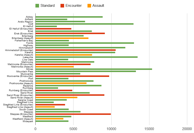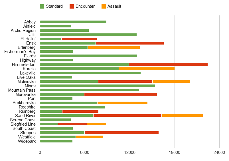 其他等级的战斗应有随机地图分配。但是由于服务器资源配置技术上的原因,导致上边三个地图成为游戏里最常见到的地图。因目前尚未得知的原因,其他地图的分配并不是完全随机的。新引进游戏的地图则有更高的分配几率。