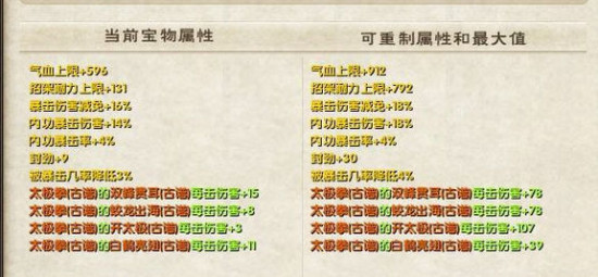 此次添加的宝物功能和之前的属性技能重置不同,有点类似于武器的淬炼,提升目前的属性值上线,进一步提高了宝物的价值和土豪玩家的战斗力。