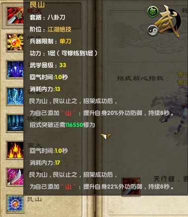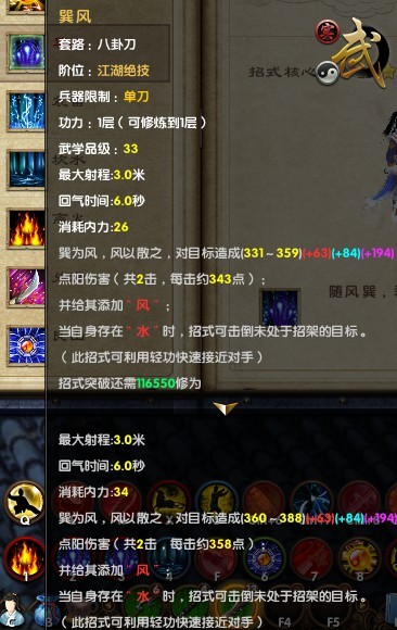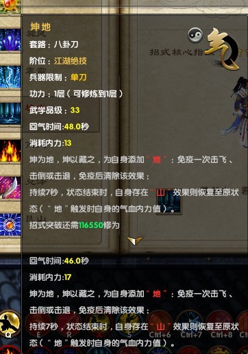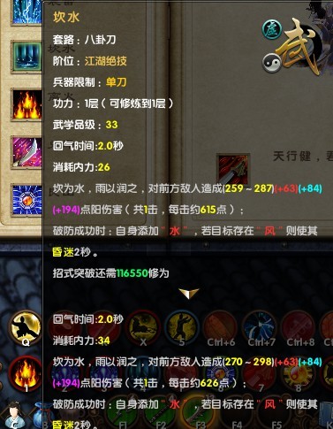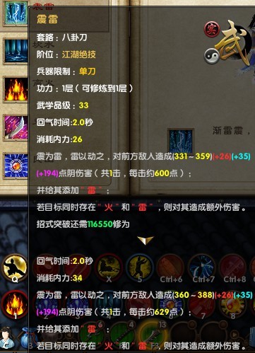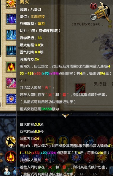 九阴真经新天梯武学 八卦刀1层属性图展示