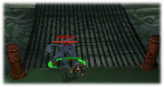 进入上古大陆后,可沿一条直线进入女娲平台,女娲平台的末端由精英首领怪物【猿猴首领】带领一群【猿猴喽啰”】看守,【猿猴首领】的攻击为普通攻击,可由 技术较好的玩家引出【猿猴首领】后,进行BOSS战,但注意BOSS位置,拉远后会重新归位,建议将猿猴首领拉到下图位置,击倒后【猿猴首领】,会刷新5 个【上古宝箱】,并且一路通往1号BOSS【汉江巨猿】的小猿猴均会消失。