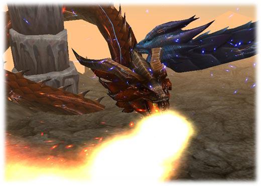 a. 龙炎:红色头颅喷吐火系龙炎,造成群体持续灼烧伤害,蓝色头颅喷吐冰系龙炎,造成群体持续冰冻伤害。