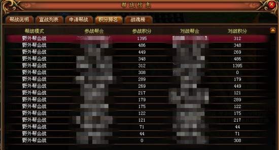 二、 帮会战PK规则: