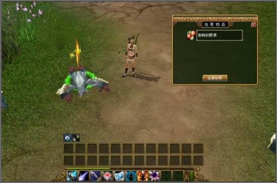 捡取物品:经过战斗后,怪物会随机爆出物品,玩家右键点击怪物尸体,点击尸体上的物品即可捡取,按住shift键再点击怪物尸体,或者点击拾取物品界面中的“全部拾取”按钮可以拾取全部物品