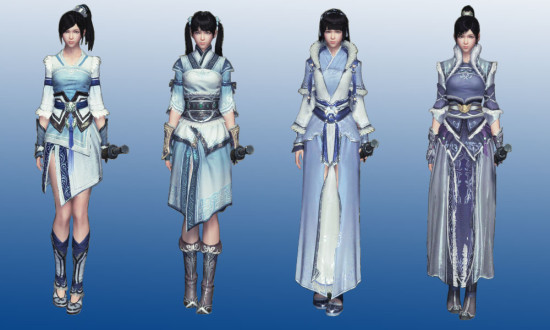 太白服饰以蓝色为主色调,辅以白色,干净而简单。门派立于秦川之巅,气候严寒。太白弟子都是“雪山来客”,冷酷的环境并不能冻住人心,虽处极寒之地,但太白妹子绝对是四个门派中最可爱的了。
