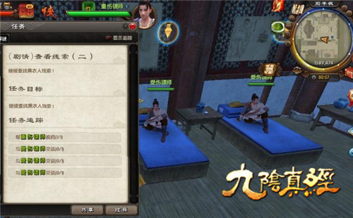 然后追查线索,被要求治疗重伤镖师并与受伤的其他镖师对话了解情况,此刻会发现要当一个合格的镖师还要具备捕快破案的本事,哈哈!所以我会继续发现可疑目标夏云卿,再跟踪他到酒楼,听他和宫女叽里呱啦聊天兮的事儿~