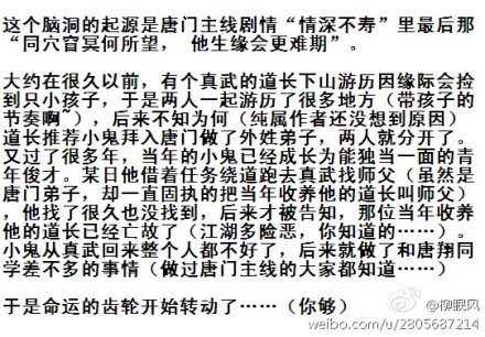 这个脑洞的起源是唐门主线剧情“情深不寿”里最后“同穴窅冥何所望, 他生缘会更难期”