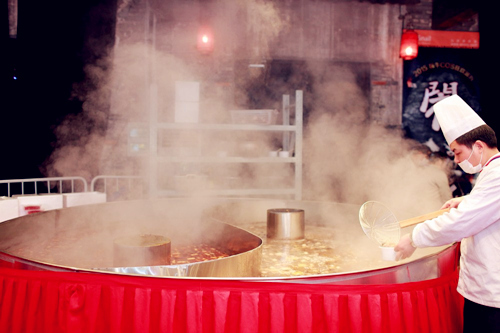 好吃的和好玩的自然是要形影不离,放眼望去满满的小吃摊位让你欲罢不能,而一口超大火锅的香味也肆意乱窜,叫人口水直流,老板看见你,都会亲切地问,骚年,银票带够了吗?