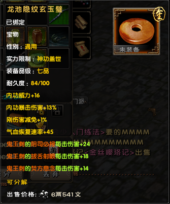 回血方面的原理再给大家说一下吧,回血宝物只回淤血,但是因为你所受伤害的一半都是淤血,所以如果淤血恢复比较快,相当于你能免伤50%(当然这是理想状态下了……)。而之所以用心佛配回血爆伤宝物(爆伤不用说了,非常重要的属性,个人觉着是必有的),是因为九阴武学增加回血类招式的共同特性,就是不仅仅增加回血量上的数值,而且会直接减少回血周期。