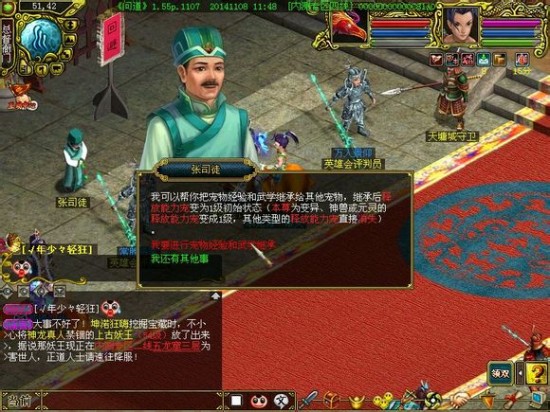 首先找到张司徒,选择“我要经行宠物经验和武学转移”