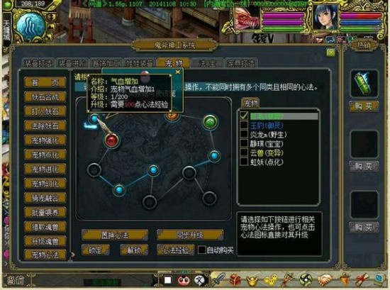 大家期待的宠物强化终于出了,在这里,就让灌水带领大家来体验一下新版宠物心法的玩法以及作用吧