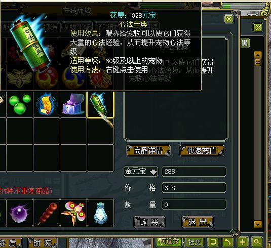 一本心法宝典可以增加3280心法经验,获得心法经验后可以选择同步升级,则会将宠物的所有心法一起升级。