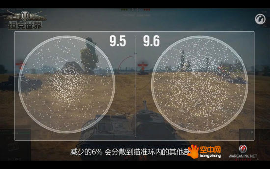 0.9.6版本提升平衡性和可玩性的另一个体现就是对于射击精度的调整。在《坦克世界》中,存在“计算在瞄准环内的射击精度”这样一种机制。而在新版本中,这项机制进行了调整——弹药打中准心的几率,从16% 降到了10%。尤其是当战车移动时,命中几率会大幅降低,而《坦克世界》对于玩家射击的技巧要求则有所提升,玩家会体会到更加真切的“坦克手”的感受。