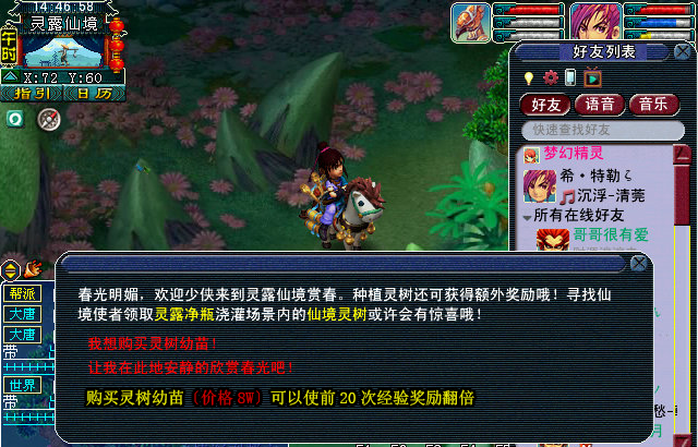 进入仙境后可以花8W购买灵树幼苗,可以使前20次经验奖励翻倍。