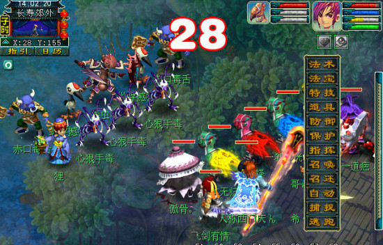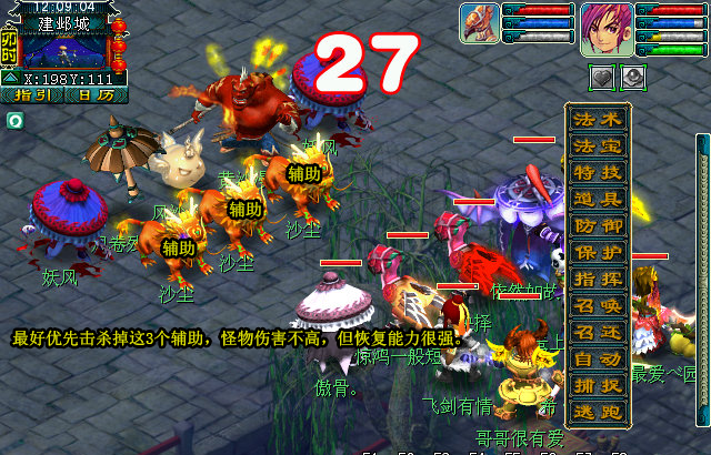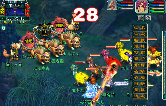 蟾蜍巨怪∶主怪为DT,速度很快,对宝宝威胁较大可以先杀,封系封下两个野猪精。