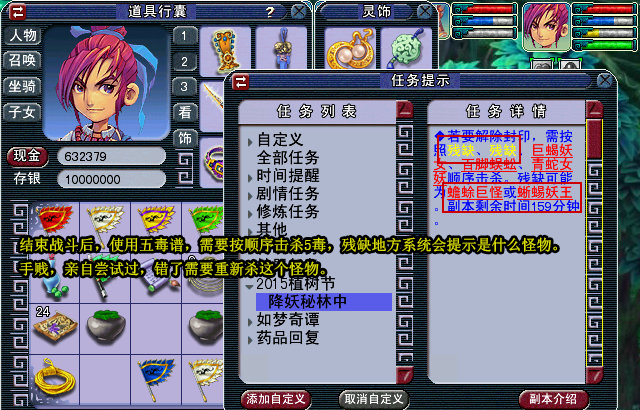 3、每个玩家每天只可完成一次"降妖秘林中"任务。