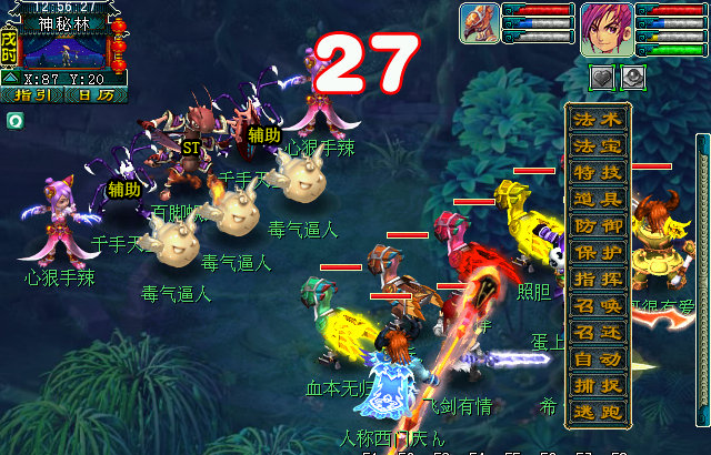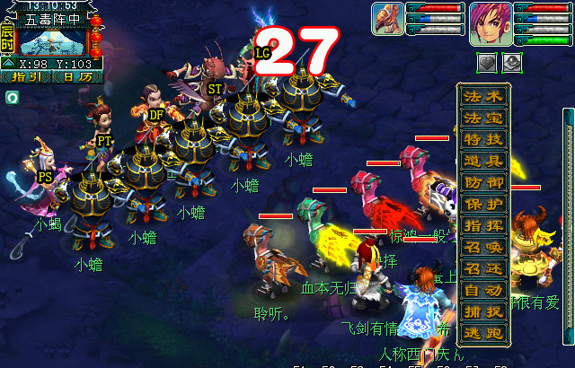 百脚蜈蚣∶主怪为ST,速度很快,输出够的话可以优先击杀他,不够的话可以封印,杀两个蜘蛛精。