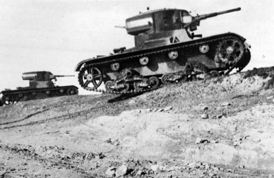 Разумеется, не обошлось без танков. Республиканская Испания получила из СССР более трёх сотен танков Т-26 и БТ-5. Войска франкистов были усилены немецкими танками Pz I и итальянскими CV 35.