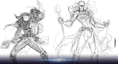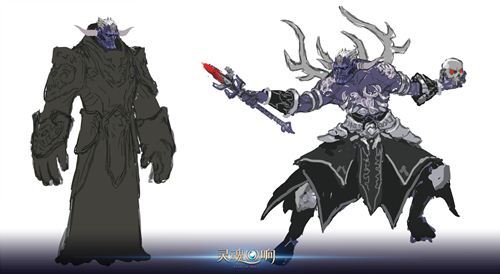 如何才能让术士独一无二魅力非凡?大家清空思维,跳脱现有传统职业的造型和游戏现有的背景设定,于是有人提出如果术士是一位从外星来的战士呢!顺着这个思路,设计者兴奋的描绘起来,超常的能力,精壮的身躯和影视作品中见过的那种霸气逼人的奇异头部。