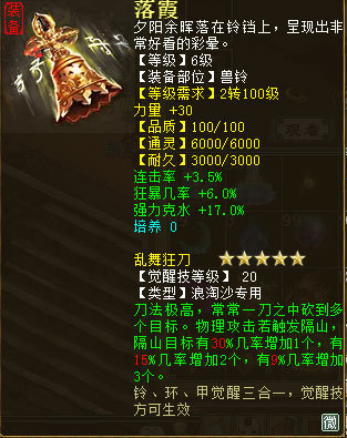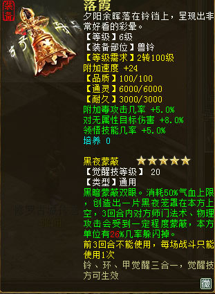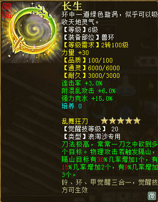 两款不同的兽铃,都可以增加召唤兽的四项属性之一,一款是浪淘沙专用,力量加30,堪比人物使用了一个PS的效果,加上3.5%的连击率,和6.0%的狂暴率,突然感觉,这是和大力有的一拼哟!而第二款通用召唤兽装备,对无属性目标伤害+8.0%的效果如果给孔雀明王这样攻击爆倍的宝宝用上也是十分逆天啊。再说,如果附毒攻击修罗砍到桃花仙会是什么效果呢?此处可以省去N字想象……另外一个技能领悟技能几率增加5%简直就是太好用了些,这是想让各种神技云集一身的节奏吗?