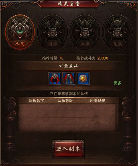 | 上古战场副本(35级可进) | [流沙神殿]、[大地裂痕] |