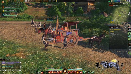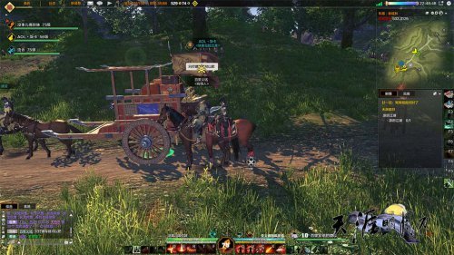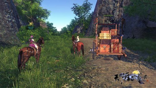 开始押镖时,由队长与发镖人对话,并确认队友、路线、奖励等,队长拥有镖车控制权,可自由选择镖车的前进与停止。