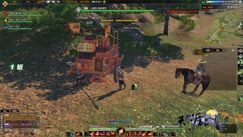 跟随镖车后,人物会自动巡回镖车四周,这时注意过桥时别自动下水卡在桥下。