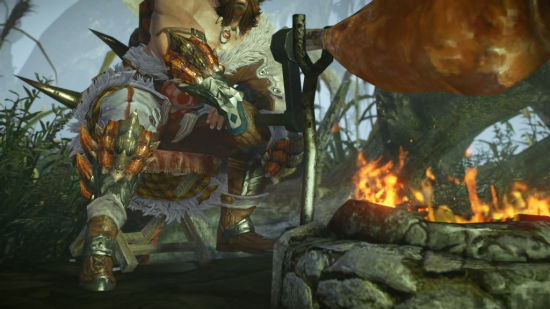 “山岚”罗登停止烤肉,站起身来挥舞手中的大剑
