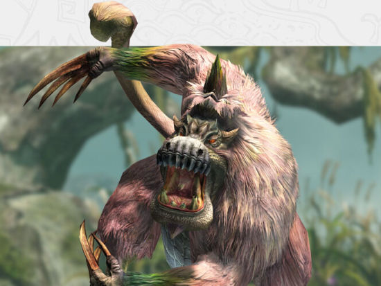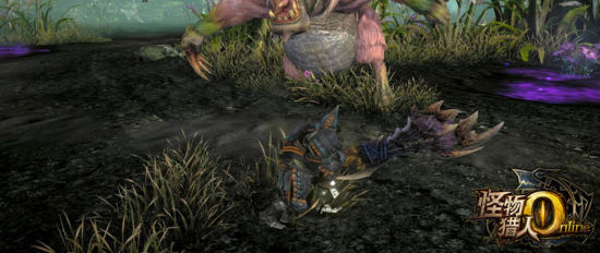 桃毛兽王坚硬的腹部会构成一系列的攻击,压杀后的震地效果会让猎人站立不稳而行动中断,同时它的臭屁也会让猎人陷入无法使用回复道具的异常状态之中,请千万小心。