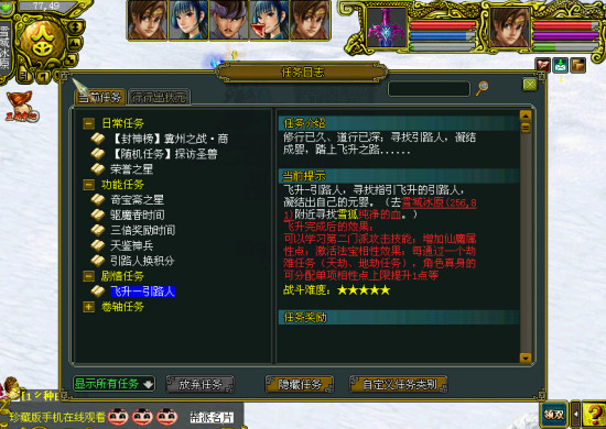 战斗结束后根据提示让去昆仑云海寻找无暇的冰晶鳞,到坐标附近任意行走即可遇怪。一个主怪,9个小怪,主怪死亡即战斗胜利。主怪速度快,且会吃小怪(有点像9527)最佳配置:队长 1B手(3500道) 3打手杀法攻略:B手一直B,最好把小怪全B了,其他人一只盯着主怪打。因为主怪抗异常高,所以为了安全起见,可以带如意BB,然后开火眼,主怪快死了的时候人都上好如意,然后BB点保护,防止被主怪必杀。PS:最好带上漫天BB吸主怪血,打手都是高妙的话可以选择5F秒,把小怪秒死,免得被主怪吃了提升主怪的攻击。