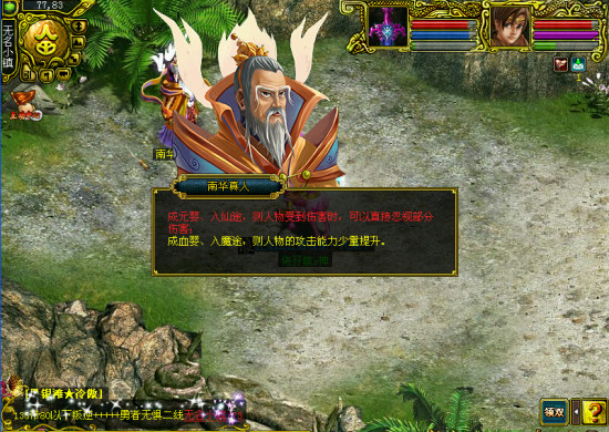 逍遥仙告知你需要到找南华真人求助,与南华真人对话战斗开始!请组满一队人,第一次遇怪开始!10只怪物超高必杀 物理攻击,队伍里务必找个体木和敏水,能心能防。建议11单杀,怪物的物理伤害很高,能必杀,能加剑,能上闪避!PS:怪物显示安静的灵兽时,不会攻击,只会加状态,当显示为“暴躁的灵兽”时,怪物会物理攻击,高攻高必杀。