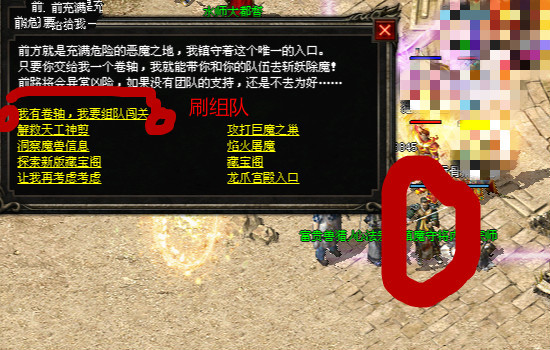 前往炼金师处挂完金刚石,每12颗一领,也就是24小时领一次,每一次都可以领到一个下地组队卷,此物可以用来组队下地或者单个下地。同时,该组队卷可以组一队人去一个特定地图闯关,没关均有赤月装备以及祝福油或者魔龙首饰图从怪物身上爆出。