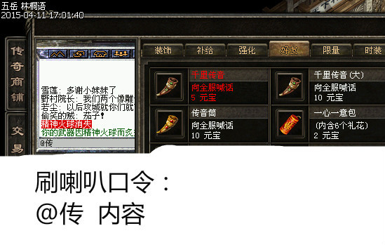 还有一点最重要的,有的新手玩家至今都不知道屏幕上面的红字蓝字从何而来,这是千里传音以及传音筒。在商铺购买,至于接下来新手玩家朋友们还有不懂的就只能刷喇叭询问了。