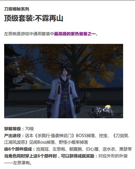 天涯明月刀 > 攻略经验 > 高级紫装之天涯明月刀ol顶级套装不霖再山
