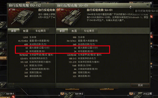 从与ISU-152对比中就可以看最高速度54公里/小时转弯速度34度/秒的SU-101已经把同宗兄ISU-152甩开了几条街。
