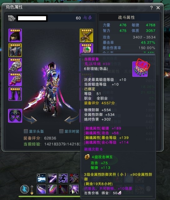装备搭配:七杀的装备很简单,前期暴击,后期会心,偏锋为御劲。
