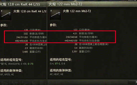 一门X级主炮122mmM62-T2不仅仅比12.8cm KWK 44L/45主炮射速更快容错率更高,AP银币弹穿深258mm金币弹更是让人恐惧的HEAT穿深高达340mm