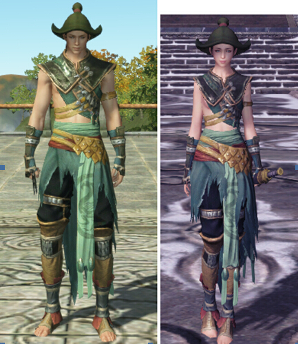 根据多方查阅资料,以及与游戏剧情掉落方式的对比,个人判断这是一套水寇的服装,上衣的材质既坚硬又贴身,足部基本裸露,衣服的下摆又透露出几分不羁,且帽子的形式在中国历史上也是为水军或水寇所用。这么看来天刀服装的外设还是很认真且良心的。名字也很不错,“鲛鲨”二字也很好的表现出水寇在水下矫健却又残忍的形象。