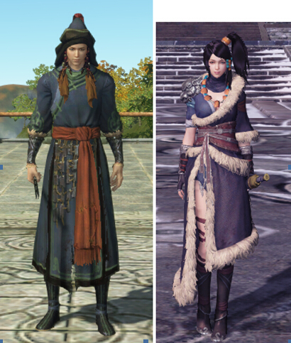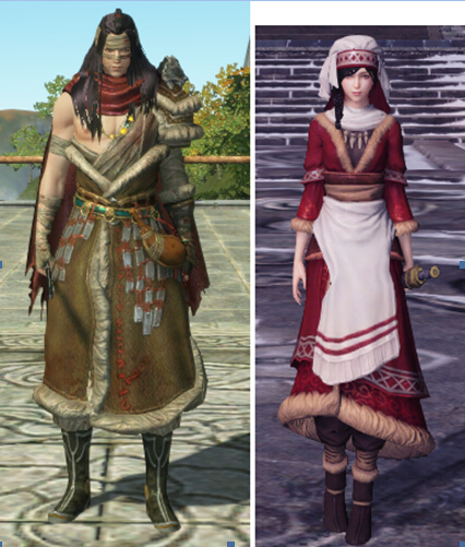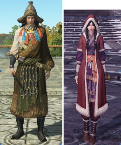 天刀时代背景为宋,天刀美工也煞费苦心的设计了一些含有宋朝边境各民族服饰元素的时装。